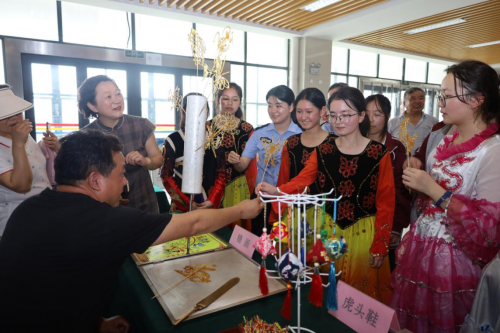 当天,同学们还饶有兴致地参观并体验了当地非遗项目。栩栩如生的虎头鞋、惟妙惟肖的根雕、活灵活现的糖画、形象逼真的风筝深深吸引住了同学们的目光,在互动、体验、交流中,大家零距离感受到非遗文化的魅力和中华优秀传统文化的博大精深。 “中华民族一家亲,同心共筑中国梦!”口岸派出所民警在民族团结进步宣传展板前,给同学们细致讲解什么是石榴籽精神以及铸牢中华民族共同体意识的重要意义。同学们纷纷表示,今后将相互尊重、相互学习、相互帮助,像石榴籽那样紧紧抱在一起,自觉成为民族团结的践行者和捍卫者。 与会领导一起向新疆毕业班优秀学生代表送上了饱含祝福的糕粽礼包和端午香囊,祝福大家在即将到来的高考中自信面对,实现理想。 郭美娟 |