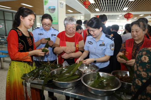 现场欢声笑语、热闹非凡,只见粽叶飞舞,草绳穿梭,在社区志愿者和石榴籽工作室民警的引导下,同学们三五成群,铺粽叶、填糯米、扎线绳……虽然技术略显生涩,但抵不住高涨的热情,大家将祝福和粽子捆绑,长长的丝线系着柔柔的心愿。“这是我第一次包粽子,我要把这粽子送给我的学长学姐,希望他们梦想成真,金榜题名!”维吾尔族学生伊帕尔阿依·艾力兴奋地说。