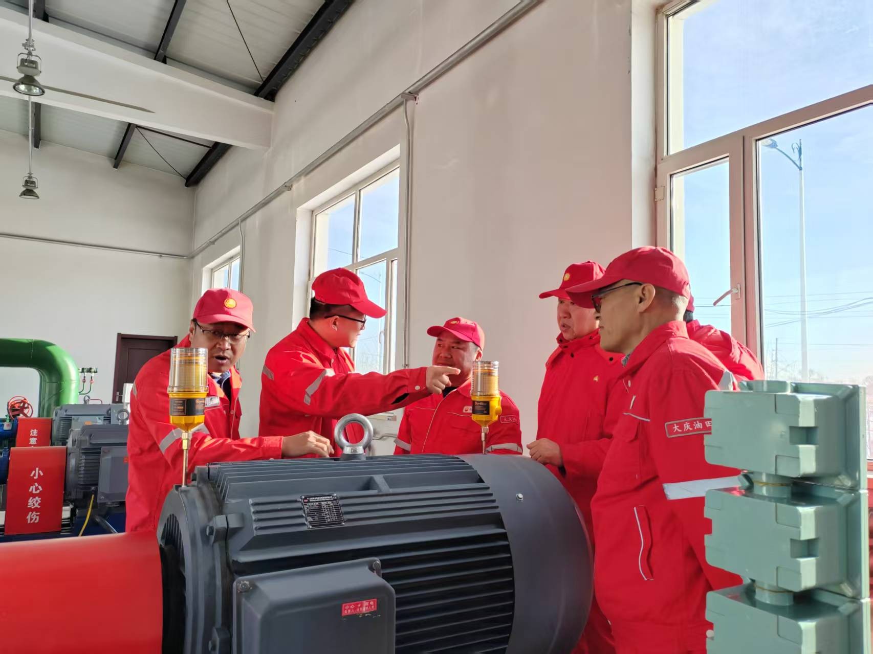 作为油田开发的“心脏枢纽”,污水处理站的稳定运行直接关系到原油产量的平稳提升,而注水泵作为核心设备,其安全操作更是重中之重。照片中,站长结合设备实际工况,从泵体压力监测、密封件检查到应急处置流程,逐一拆解安全操作规范,条理清晰、重点突出。站内员工们围站在设备旁,或认真记录,或颔首回应,眼神中透着专注与自信。他们深知,安全无小事,唯有把每一个操作细节烂熟于心,把每一项准备工作做到极致,才能在复杂工况下始终保持从容。